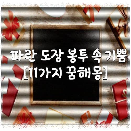 상단 포스팅 해드린 내용은 파란 도장 봉투 속 기쁨 [11가지 꿈해몽] 알아보았습니다. 상기 해몽이 꿈해몽 찾으셨던분께 좋은 정보가 되었길바랍니다.