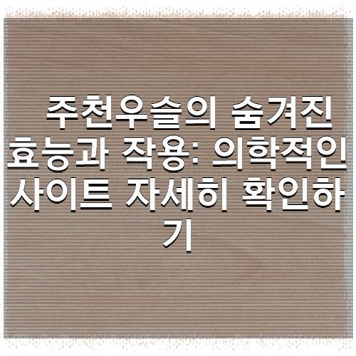 알아보자 :: 주천우슬의 숨겨진 효능과 작용: 의학적인사이트 자세히 확인하기