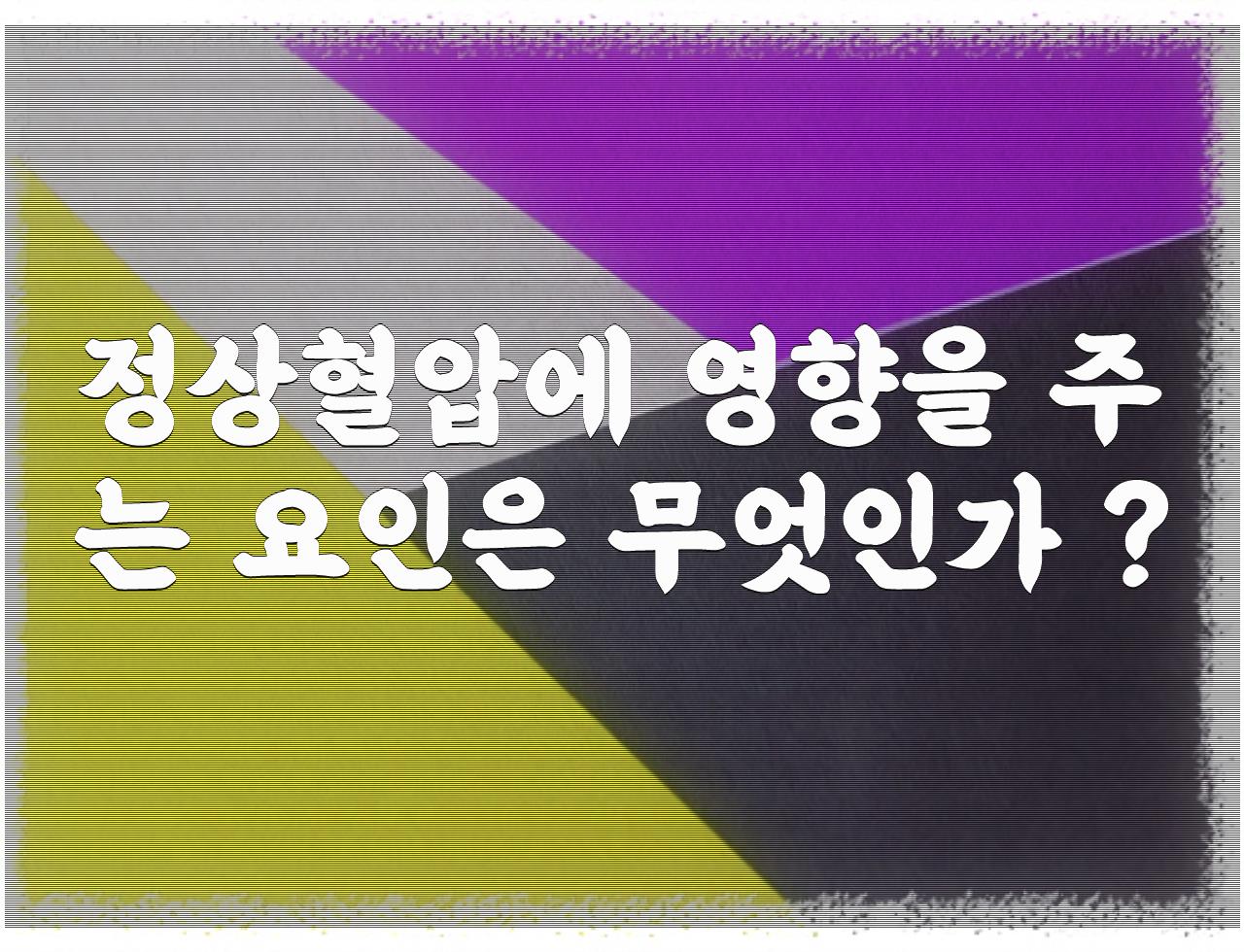 정상혈압에 영향을 주는 요인은 무엇인가 ? 관련내용 확인 해 보시겠습니다.