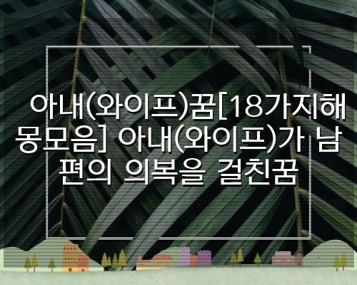 아내(와이프) 꿈, 아내(와이프)가 남편의 의복을 걸친꿈 필요한 꿈해몽관련꿈 해몽모음입니다.